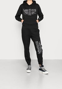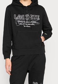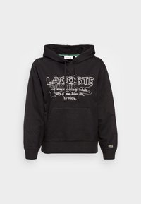 Sweat à capuche noir avec un motif de crocodile blanc et du texte. Confectionné en matière douce avec des poignets et un ourlet côtelés. Poche kangourou à l'avant incluse.