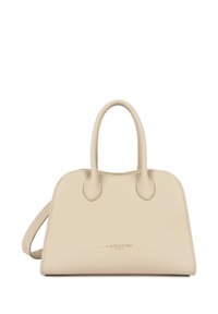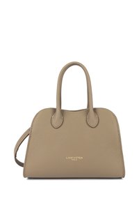 Sac à main Lancaster Paris en cuir fauve avec deux poignées arrondies et une bandoulière amovible sur fond blanc.