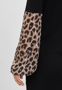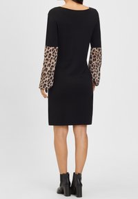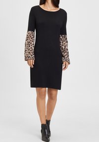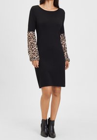 Robe noire à manches longues avec un accent à imprimé léopard. Tissu en maille, encolure ronde, forme ajustée et ourlet uni.