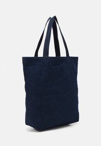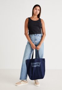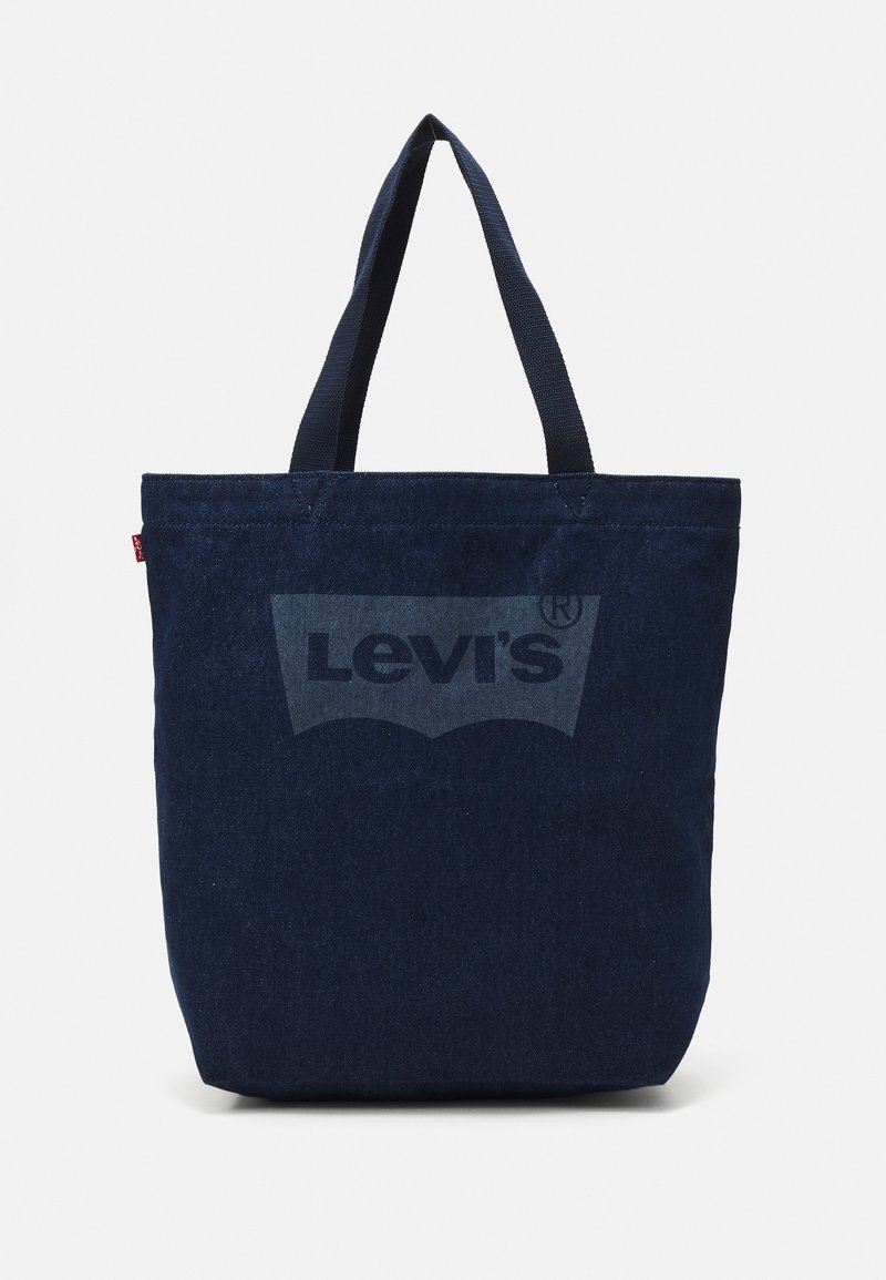 Sac fourre-tout en denim bleu foncé avec des poignées doubles en tissu et un logo Levi’s imprimé dans une teinte plus claire à l'avant. Forme rectangulaire structurée.