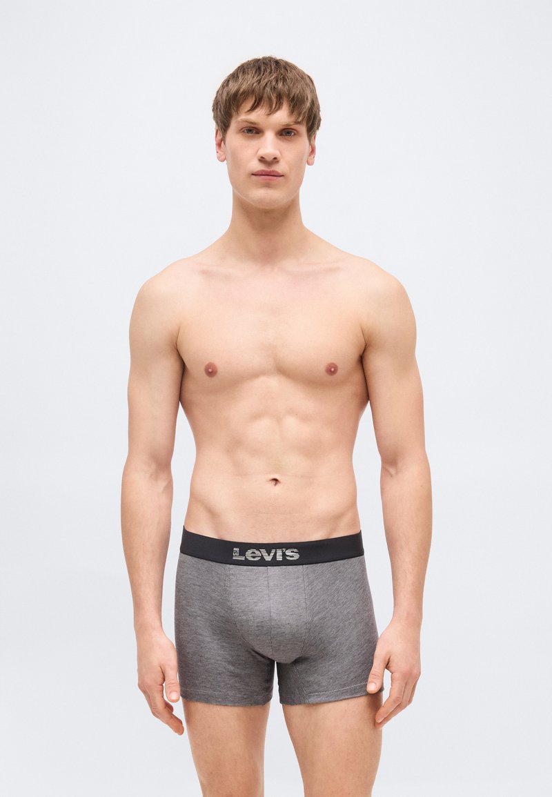Jeune homme debout face à l'avant, portant un boxer Levi's gris avec une ceinture noire, sur un fond clair uni.