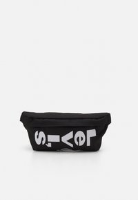 Sac ceinture noir zippé avec de grandes lettres blanches en bloc formant un logo partiel "Levi's" sur le devant.