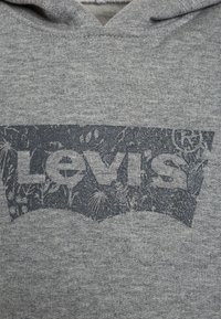 Sweat à capuche Levi's gris avec manches longues, poche kangourou à l'avant et logo estompé sur la poitrine.