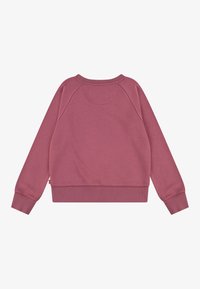 Sweat-shirt à manches longues couleur rose poudré avec col rond, poignets et ourlet côtelés, arborant un logo Levi’s blanc sur la poitrine.