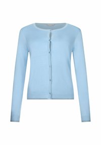 Cardigan jaune à manches longues, col rond et rangée de boutons. Doté d'une bordure contrastante et d'une texture en maille douce.