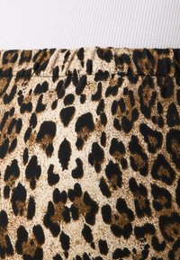 Culottes en crème avec un motif rayé tigre noir et marron, présentant une texture lisse et un design taille haute.