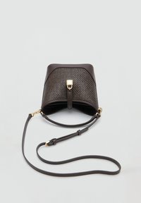 Sac à main en cuir tressé brun foncé avec une poignée structurée et une fermeture à boucle avant dorée, combinant texture et finitions lisses.