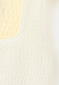 Camisole en soie jaune pâle avec bordure en dentelle au niveau de l'encolure et de l'ourlet. Dotée de fines bretelles et d'une coupe décontractée. Associée à un pantalon noir.