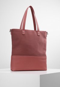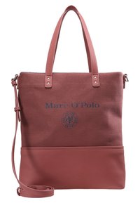 Sac cabas rose poudré avec double poignée, bandoulière réglable, partie supérieure en tissu, base en simili cuir, et logo "Marc O'Polo" à l'avant.