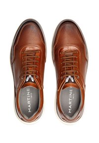 Ces baskets en cuir lisse et texturé avec bout arrondi séduisent par leur laçage classique et leurs empiècements structurants qui soulignent leur silhouette moderne. La combinaison de matières leur confère de la profondeur et une touche contemporaine, tandis que la semelle contrastante et adhérente assure confort, stabilité et maintien sûr au quotidien. Un style décontracté-chic qui allie sans effort élégance et sportivité.