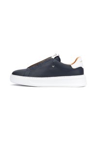 Baskets rondes en cuir grainé avec design slip-on et empiècement central élastique dissimulé pour un ajustement pratique et confortable. Le contrefort contrastant et les coutures décoratives visibles leur confèrent une touche moderne et structurée. La semelle distinctive assure confort, stabilité et un look contemporain au quotidien. Un style décontracté-chic qui allie élégance moderne et confort durable.
