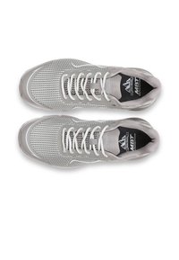 Baskets athlétiques gris et blanc avec tige en maille, fermeture à lacets, semelle rembourrée et un logo latéral indiquant "COLORADO X."