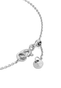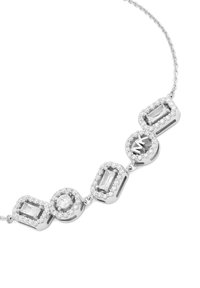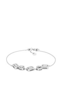 Bracelet chaîne en argent avec cinq maillons rectangulaires distincts ornés d'accents scintillants et d'un fermoir, présentant une finition lisse et polie.