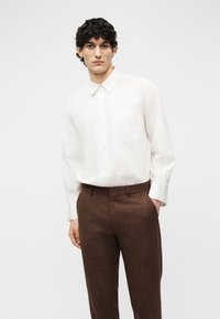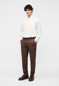 - 54% polyester, 24% laine, 20% lin, 2% élasthanne