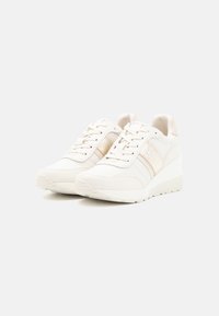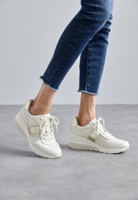 Baskets légères avec une tige en tricot beige texturé, des accents crème et des détails en métal doré. Dotées d'une semelle rembourrée pour un soutien.