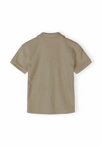Jeune garçon debout, portant un polo à manches courtes en maille gris clair et un short assorti, avec des chaussettes blanches et des baskets beiges.