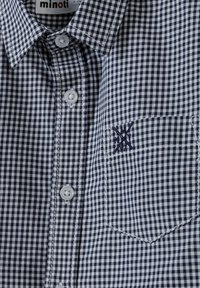 Chemise à manches courtes à boutons avec un motif vichy bleu marine et blanc. Caractérisée par une poche poitrine et un col. Fabriquée en tissu léger.