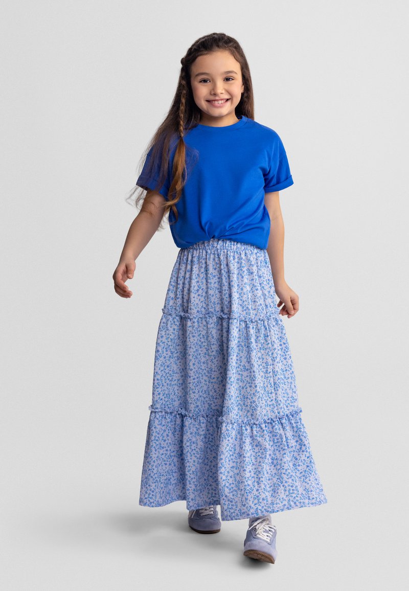 FLORAL LONG WITH ELASTIC WAIST - Jupe longue - blue