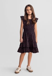 FRILL SLEEVES AND FLORAL - Robe de jour - black