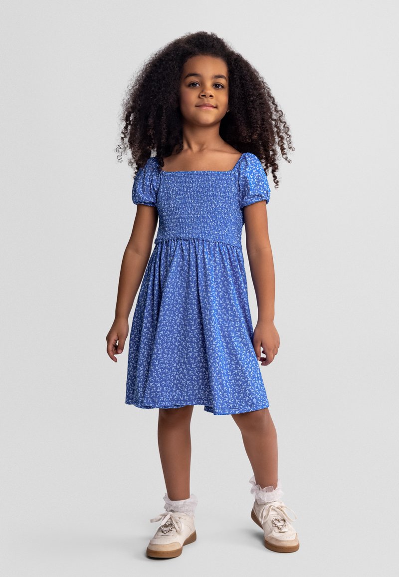 SHORT SLEEVE WITH SHIRRED FLORAL PRINT - Robe de jour - blue