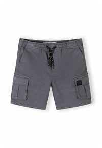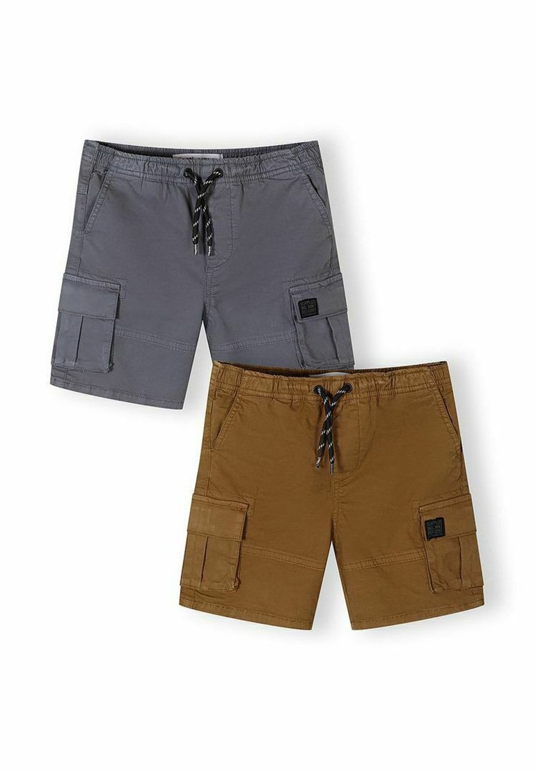 Deux paires de shorts cargo, une grise et une marron, chacune dotée d'une taille à cordon et de poches latérales avec rabats.