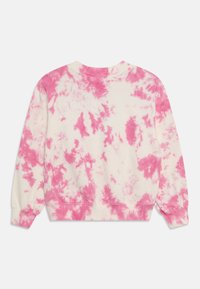Sweatshirt à col rond de couleur crème avec un motif tie-dye rose. Doté d'un col rond côtelé, de manches longues, ainsi que de poignets et d'un ourlet côtelés. Matière en coton doux.