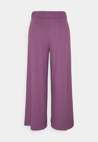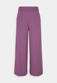 Pantalons amples violets avec un motif en ribbed texturé. Dotés d'une taille élastique pour le confort et d'une coupe lâche et fluide.
