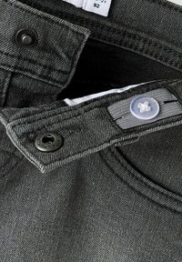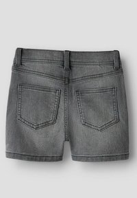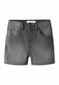 Short en denim gris pour tout-petit avec bouton devant, passants de ceinture et deux poches avant, taille 92.