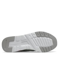 Baskets basses blanches et grises avec bout perforé, laçage à l'avant, col rembourré et logo « N » sur le côté.