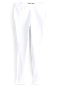 Leggings en jean jersey blanc coupe slim avec poches avant, passants pour ceinture et fermeture éclair dissimulée.