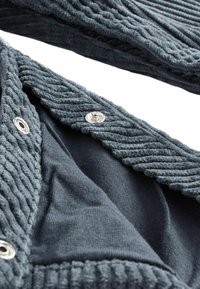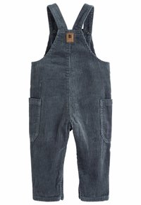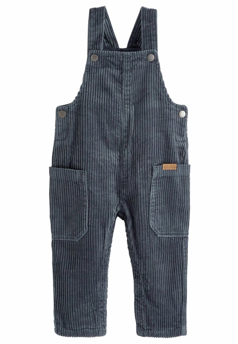 Salopette en velours côtelé gris foncé pour tout-petit, avec poches avant et bretelles réglables à boutons.