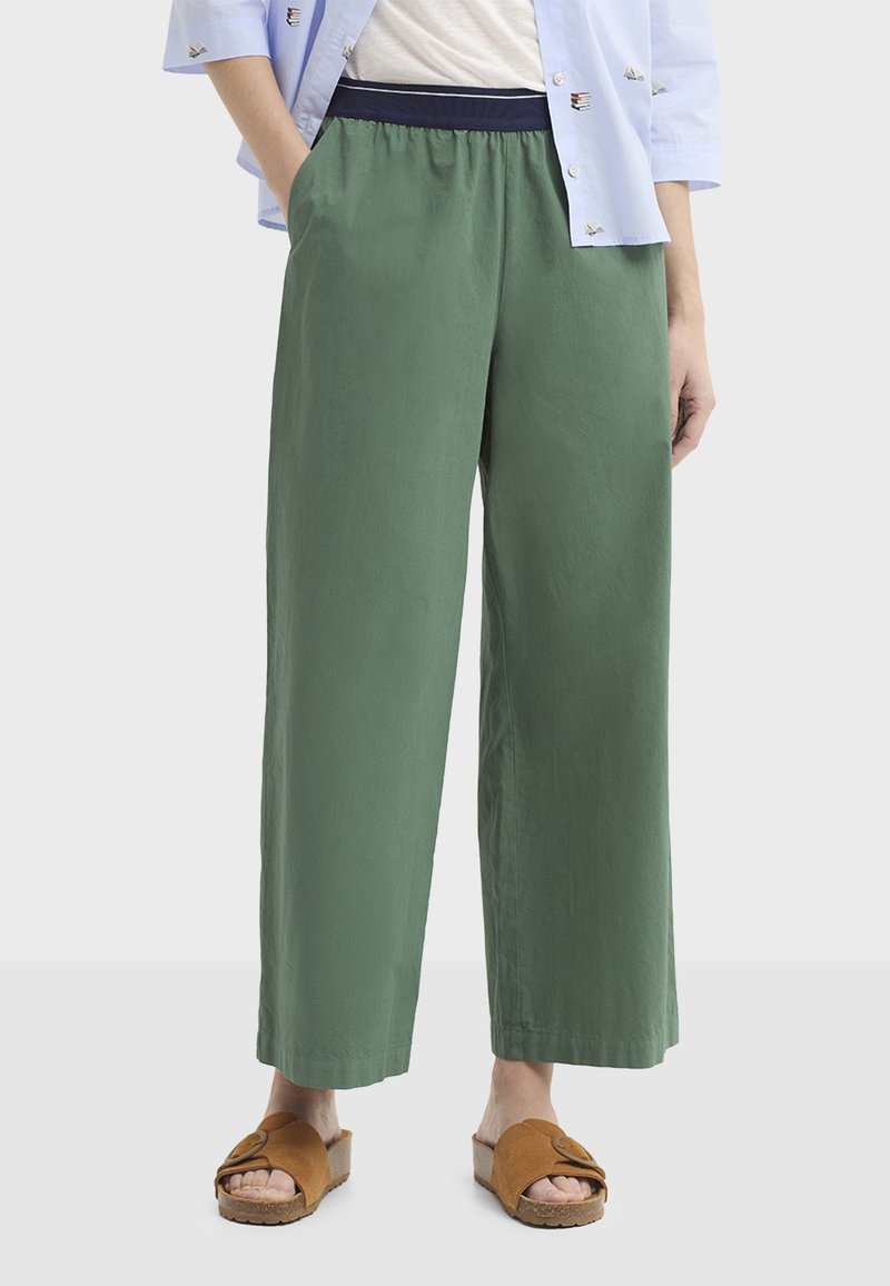 Pantalon en popeline de coton durable, sélectionnée pour sa légèreté et sa douceur au porter. La taille élastique contrastante apporte un confort optimal tout en structurant la silhouette, tandis que les poches latérales ajoutent une touche fonctionnelle. La jambe large crée un tombé fluide et naturel, offrant une allure à la fois décontractée et soignée, idéale pour les journées estivales et les looks casual élégants.