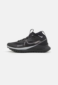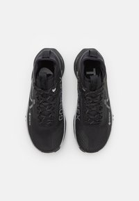 Chaussure de trail noire Nike Gore-Tex avec lacets, semelle texturée et accents de logo blancs, conçue pour une utilisation en extérieur et une grande durabilité.