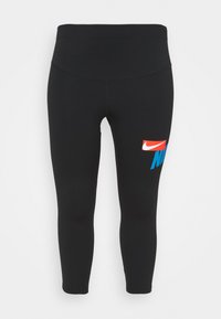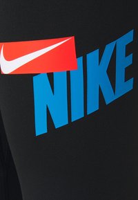 Leggings noirs Nike avec taille haute et logo bleu et rouge sur la partie supérieure de la cuisse, longueur raccourcie.