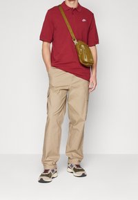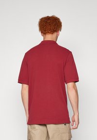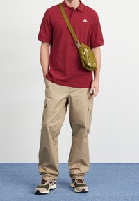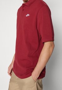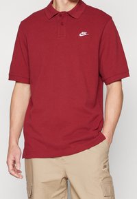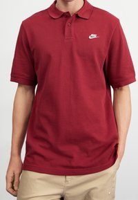 Polo en bourgogne avec un design à col. Fabriqué en tissu texturé, avec un petit logo Nike blanc sur la zone du côté gauche de la poitrine.