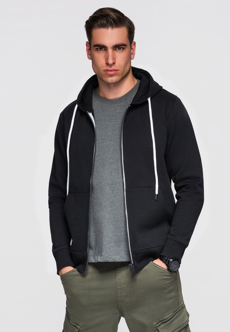 HOODED ZIP-UP SWEATSHIRT OM-SSBZ-0272 - Sweat zippé - black
