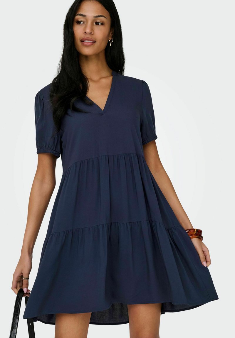 NORMAL GESCHNITTEN V-AUSSCHNITT ELASTISCHE BÜNDCHEN KURZES - Robe de jour - night sky