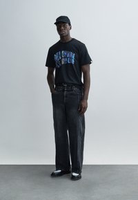 SEAMING DOUBLE WAIST PANTS UNISEX - Jean droit - black