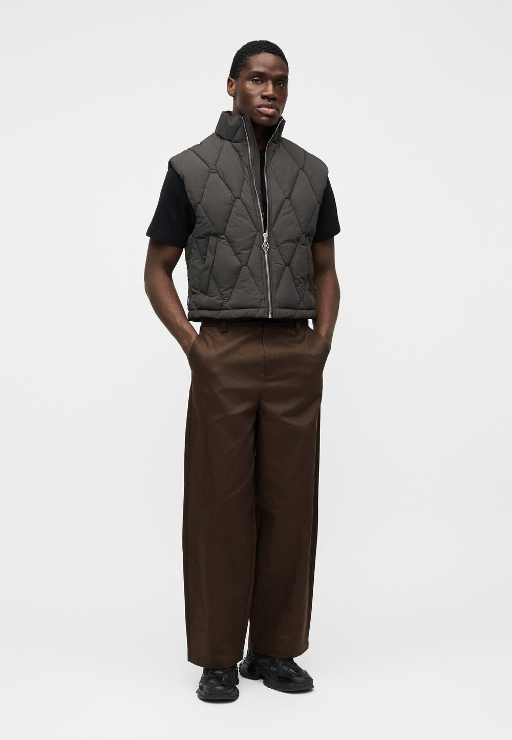 WIDE LEG - Pantalon classique - brown