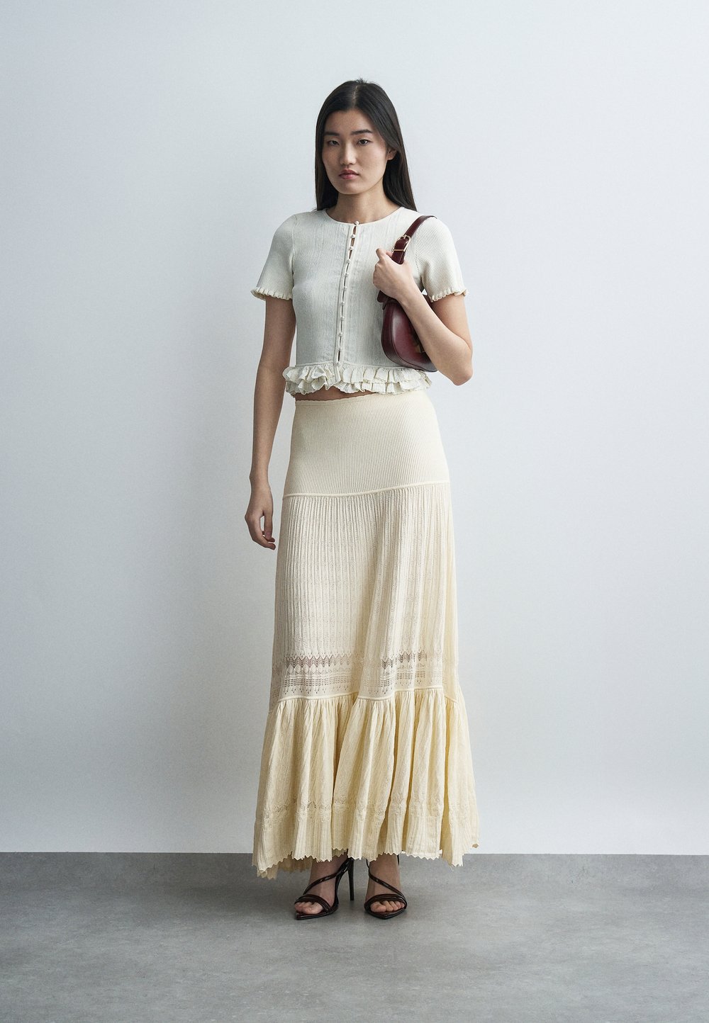 JUPE MIDI MAILLE LOOK - Jupe longue - ecru