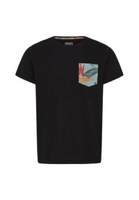 T-shirt blanc avec des manches raglan vertes et le texte "CHAQUE CHOSE EST UNE OPPORTUNITÉ", associé à un pantalon large gris clair et des chaussures beiges.