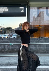 POLKA DOT SKIRT - Jupe trapèze - black