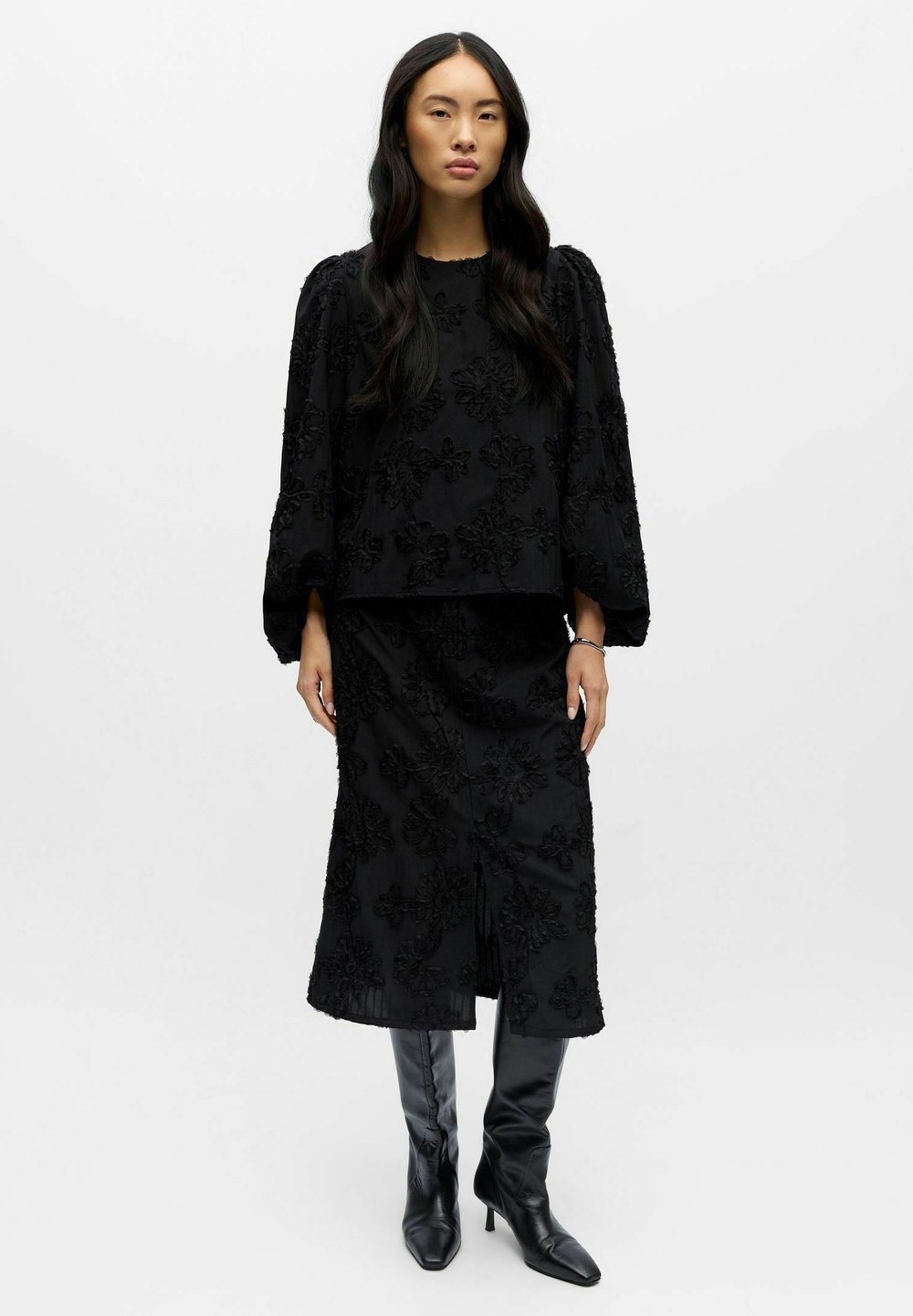 MIDI GEBLÜMTER - Jupe crayon - black