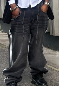 UNISEX BAGGY FIT DENIM SELF BELT - Jean boyfriend - black denim