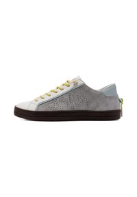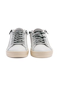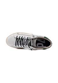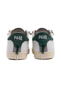 La John White Forrest est confectionnée en cuir blanc et daim gris, rehaussée d'un empiècement talon en daim vert, de lacets assortis blanc cassé et verts, et d'un charm vert sur chaque lacet. Notre semelle en caoutchouc P448 emblématique assure une excellente stabilité. Complétez le look avec la paire de lacets blancs fournie. Fabriquée au Portugal.