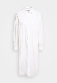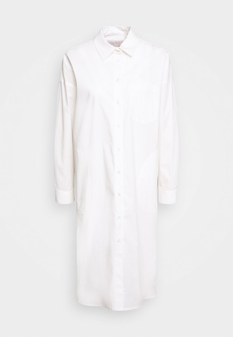Chemise blanche à boutons, manches longues, légèrement brillante, en tissu de coton, avec une poche poitrine et un col classique.