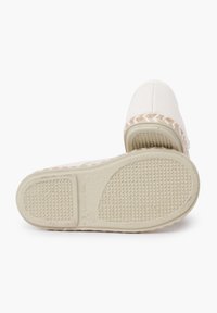 Baskets en toile blanches avec bout arrondi, deux œillets pour les lacets et finition en jute tressé le long de la semelle. Tige texturée avec un subtil détail de couture.