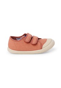 Basket bleue pour tout-petit avec embout et semelle en caoutchouc blanc, dotée de deux bandes auto-agrippantes réglables pour la fermeture.
