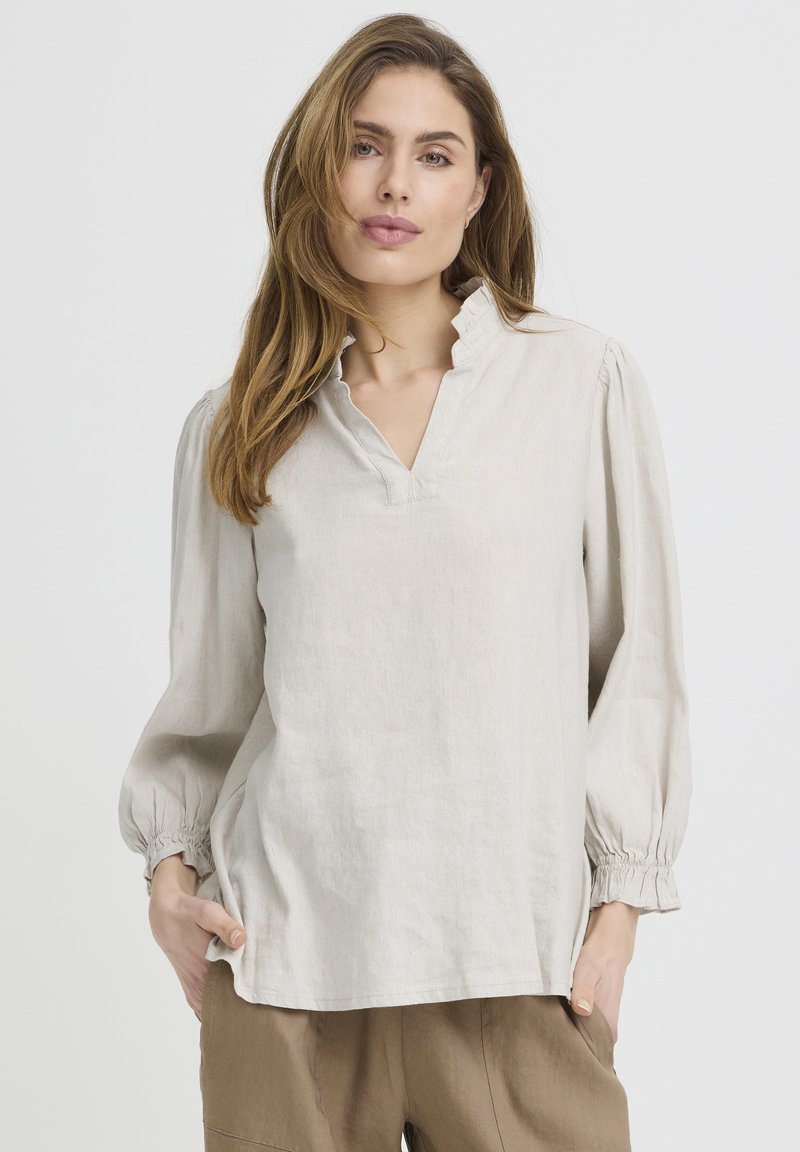 PZLUCA FRILL - Blouse - sandshell melange