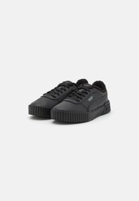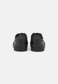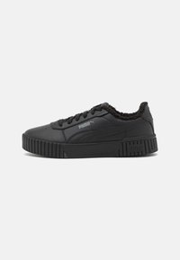 Baskets Puma noires avec une finition en cuir texturé, bout rond, semelle plate, design à lacets et une bordure duveteuse autour du col.